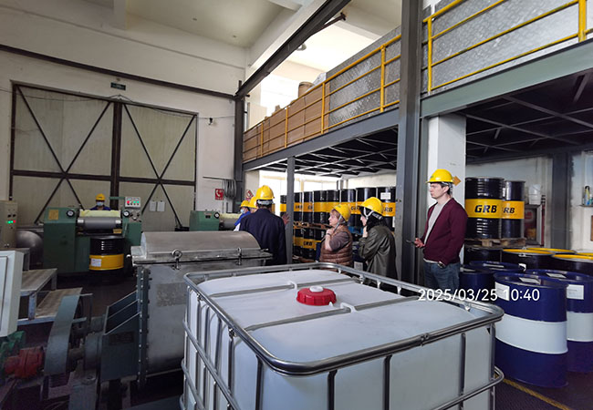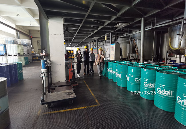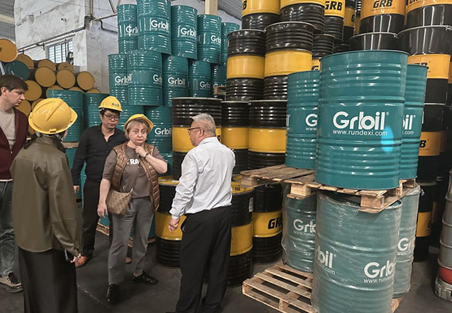 在我司總經(jīng)理?xiàng)詈闈凹夹g(shù)團(tuán)隊(duì)的陪同下,俄羅斯客戶參觀了公司生產(chǎn)車(chē)間、研發(fā)檢測(cè)中心、倉(cāng)庫(kù)等,客戶對(duì)我司的智能化生產(chǎn)線、嚴(yán)格的質(zhì)量管控體系及創(chuàng)新產(chǎn)品技術(shù)表示高度認(rèn)可,尤其對(duì)特定型號(hào)的淬火油、沖壓油、潤(rùn)滑脂的性能指標(biāo)給予了積極評(píng)價(jià)。