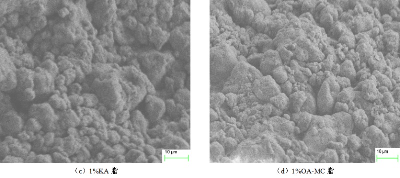 以20號(hào)變壓器油為基礎(chǔ)油,聚四氟乙烯為稠化劑,將添加劑(MC、OA-MC、KA或OA-KA)粉末分別按質(zhì)量分?jǐn)?shù)為0.5%、1.0%、1.5%、2.0%加入到PTFE潤滑脂中,并加入少量石油醚作為分散劑,加熱至80 ℃并保溫30 min至石油醚揮發(fā)完全,使用三輥研磨機(jī)將制備潤滑脂研磨三遍,得到實(shí)驗(yàn)用潤滑脂樣品。